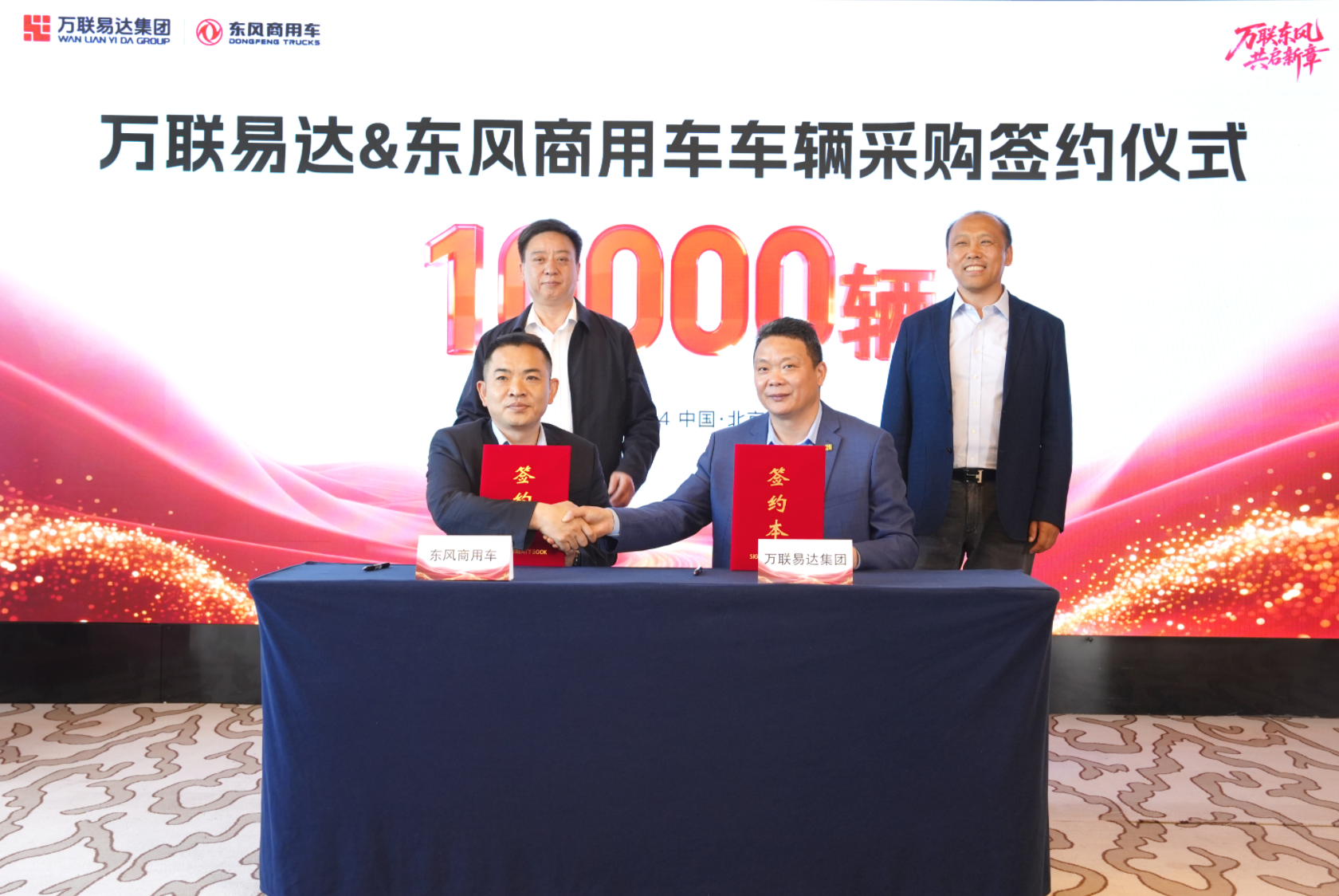 4月27日,万联易达集团与东风商用车公司联合举办“万联东风,共启新章——10000辆商用车采购签约仪式”。双方将围绕车辆供给、运力服务、车后市场等领域开展深度合作,共同推动物流运输行业高质量发展。